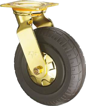 Rueda: En Caucho Termoplástico (TPR) Antipinchazo resistente al desgaste. Dureza 80A-85A. Soporte: En Acero estructural Anonizado(DORADO) en doble hilera de esferas. Sugerencias de uso: Para carros ambulantes, plataformas, muebles. gran suavidad y resistencia al desgaste
